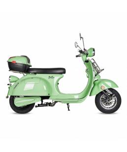 La moto eléctrica BELLA de 5000W combina el estilo icónico de la clásica Vespa con la potencia moderna de un motor de 5000W, ideal para circular de forma segura, eficiente y con un toque vintage por la ciudad. Disponible en colores verde y plateado, su diseño nostálgico y redondeado es ideal para los amantes de la movilidad eléctrica que buscan destacar en la carretera.