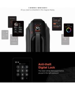 Dispondrás de toda la información gracias a su pantalla multifunción (APP Touch Screen),donde podrás configurar infinidad de parámetros desde el propio display o bien desde su App. También puedes activar un sistema anti-robo mediante contraseña.