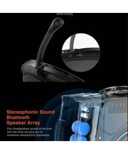 Disfruta de tu música preferida en los paseos por la ciudad, gracias a sus cuatro altavoces estéreos con tecnología bluetooth, situados en la parte delantera y trasera del monociclo.