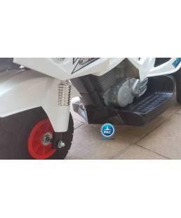 Esta moto es ideal para las salvajes aventuras en el parque de los niños, que les dará horas de diversión ahora con auténticas ruedas neumáticas, dispone de dos potentes motores de 20W, que le permite desarrollar entre 4 y 6 Km/hora, por lo que prácticamente dobla la velocidad de una tradicional moto 6V, además nótese que el motor es más potente, por lo que tiene mayor tracción que permite subir pendientes con algún desnivel, algo que no sucede con las motos 6V, por otra parte, al tratarse de una trimoto (3 ruedas), le da mayor confort y seguridad al niño o niña. Con más de un metro de largo, será la envidia del parque.