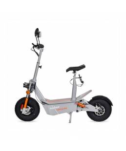 El scooter presenta un diseño urbano de color gris oscuro, destaca por su estilo poderoso y dinámico. El robusto patinete está fabricado con materiales macizos, pues la excelente calidad del scooter eléctrico hace que sea resistente. Cuenta con sillín cómodo y no regulable. Ideal para que tus viajes sean mejores que con un patinete tradicional. Además, este modelo incluye nueva pantalla LCD XXL que proporciona toda la información necesaria, en el display encontrarás los indicadores de batería y el cuentakilómetros . Asimismo, los componentes que no pasan desapercibidos son: luz frontal, retrovisores, suspensiones y placa de matricula