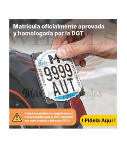 Este adhesivo identificativo para patinetes eléctricos y VMP está diseñado conforme al formato utilizado en el registro de la DGT, facilitando la correcta identificación del vehículo una vez completado el trámite.